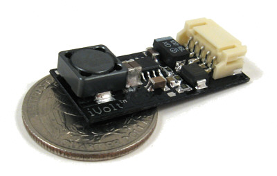 efficiency in a small size. It is a switch mode DC/DC stepdown converter and fits into